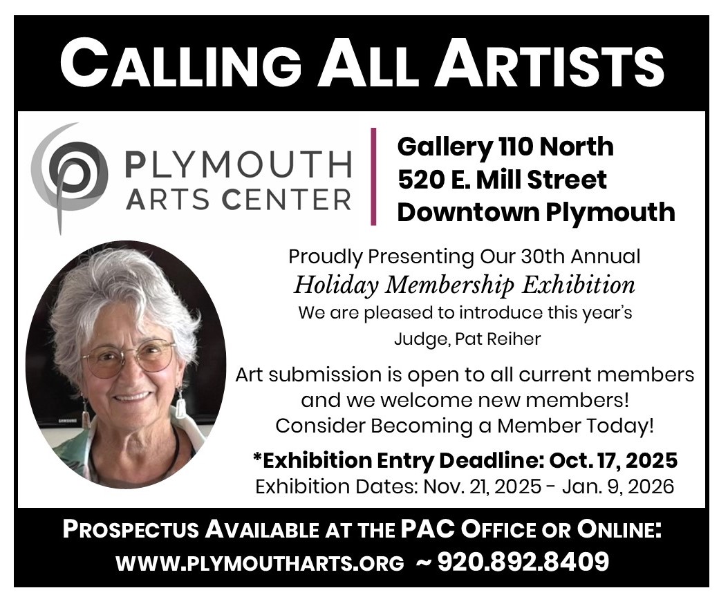 To request a prospectus, which describes the entry process, and a membership form, please call (920) 892-8409 or email info@plymoutharts.org; it can also be downloaded and printed from the PAC website: www.plymoutharts.org. Visit the Plymouth Arts Center office at 520 East Mill Street, downtown Plymouth, Tuesday-Friday, 10am-4pm.