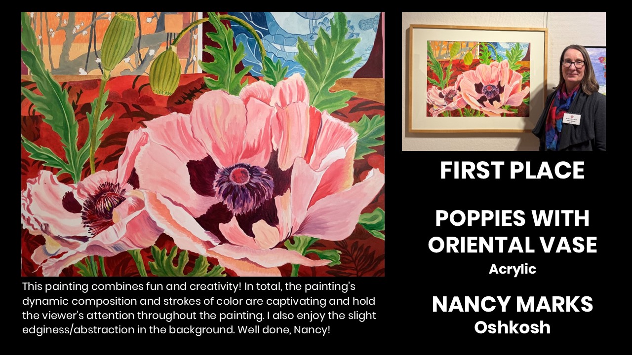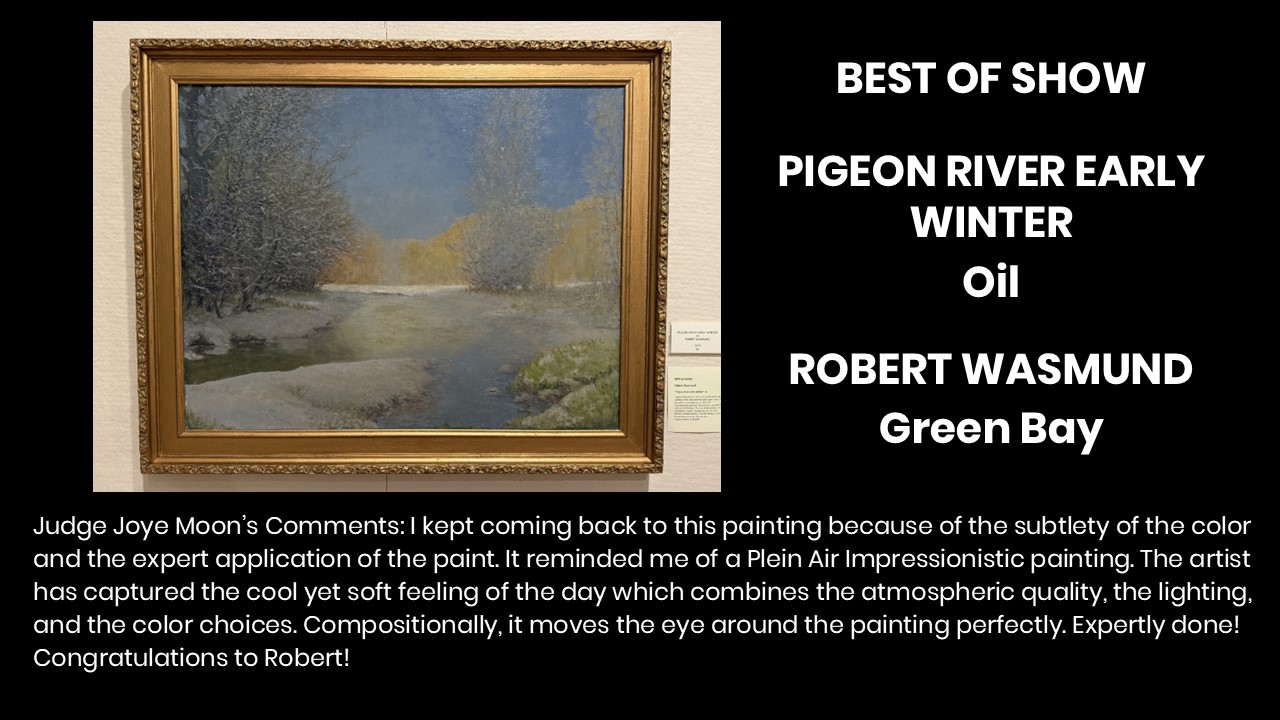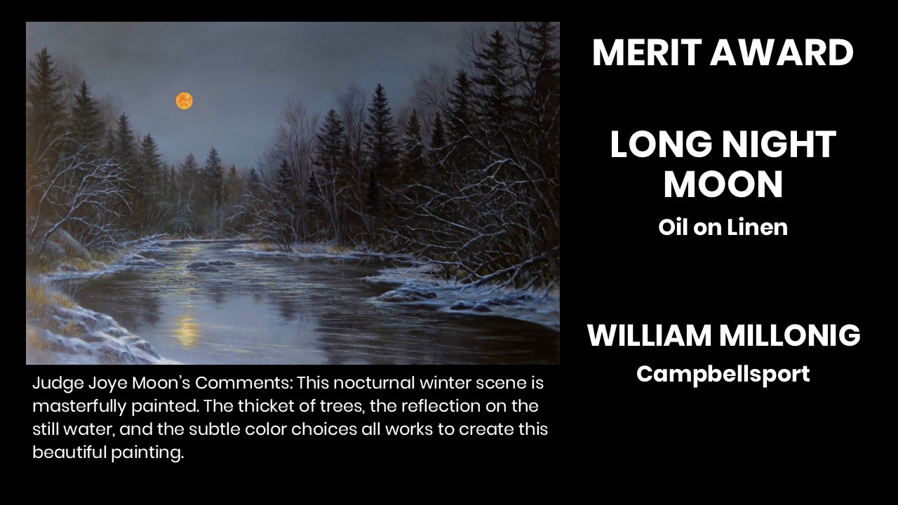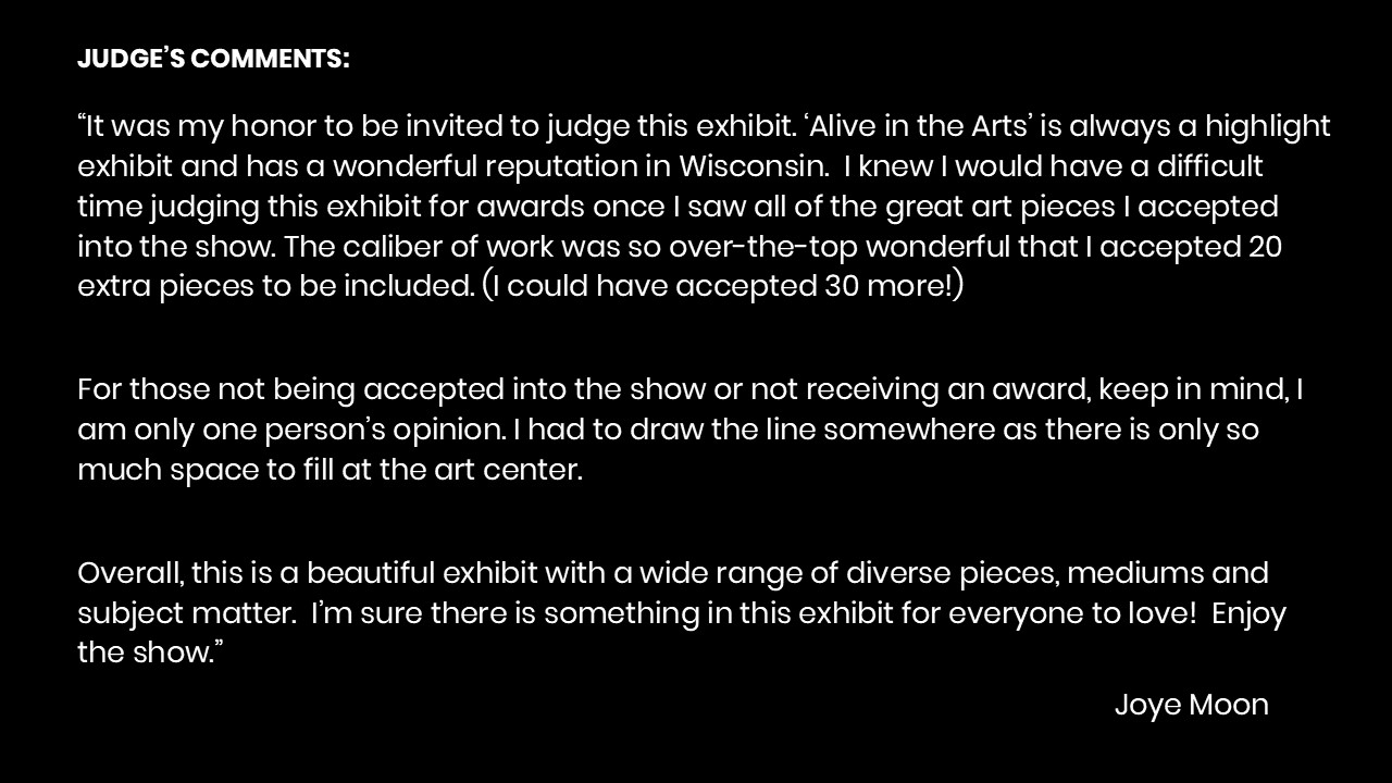 Awards for this show were determined at the Juror/Judge’s discretion from the actual work. The winning artists were announced during the Awards Ceremony at 6:00pm at the reception. Cash awards totaling $2000 and Merit Awards were presented.