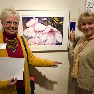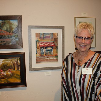 About the Artists: Evie Grasse, “As an artist, vibrant and expressive watercolor paintings of landscapes, still life and flora have become my passion. I want my brushwork to be powerful, with color that interprets God’s beautiful creations. I look for bold shapes, how the colors play against one another and how the light and dramatic shadows create the mood of the painting. I paint what inspires me and I dedicate myself to sharing my labor of love with others. I have taken many workshops throughout the Midwest and Southwest from artists whose work I admire. My ambition is to achieve the same distinguished success they have.”