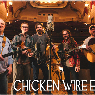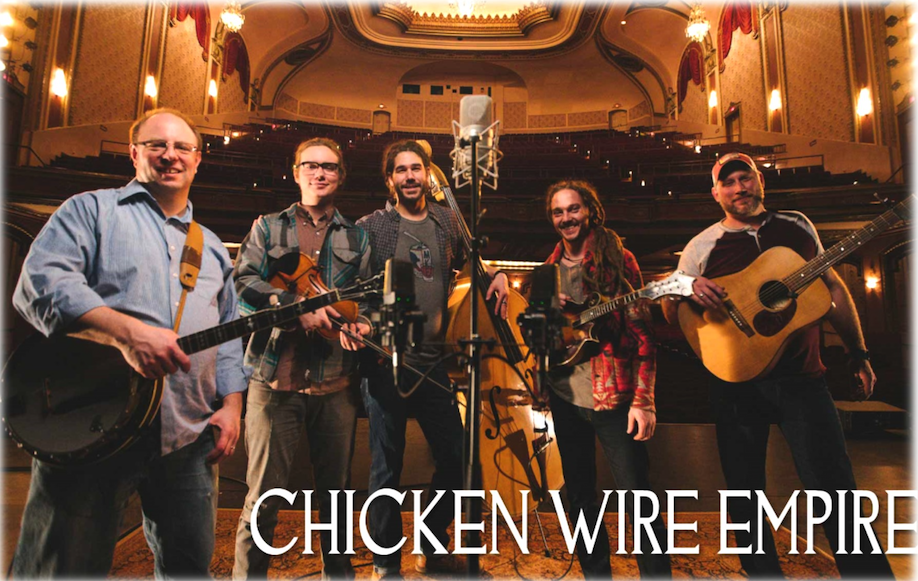 Since their formation in 2014, Chicken Wire Empire has established themselves as one of the hottest up-and-coming bands in both the local and regional music scene. The band blends contemporary tones with traditional roots to create a bluegrass style that is entirely their own. Their inspired song writing, and showmanship makes this the kind of show that anyone can enjoy. The band members are: Ryan Ogburn (mandolin), Jordan Kroeger (upright Bass), Greg Brundage (Guitar), and Jon Peik (banjo), Ernest Brusubardis IV (fiddle.) www.chickenwireempire.com