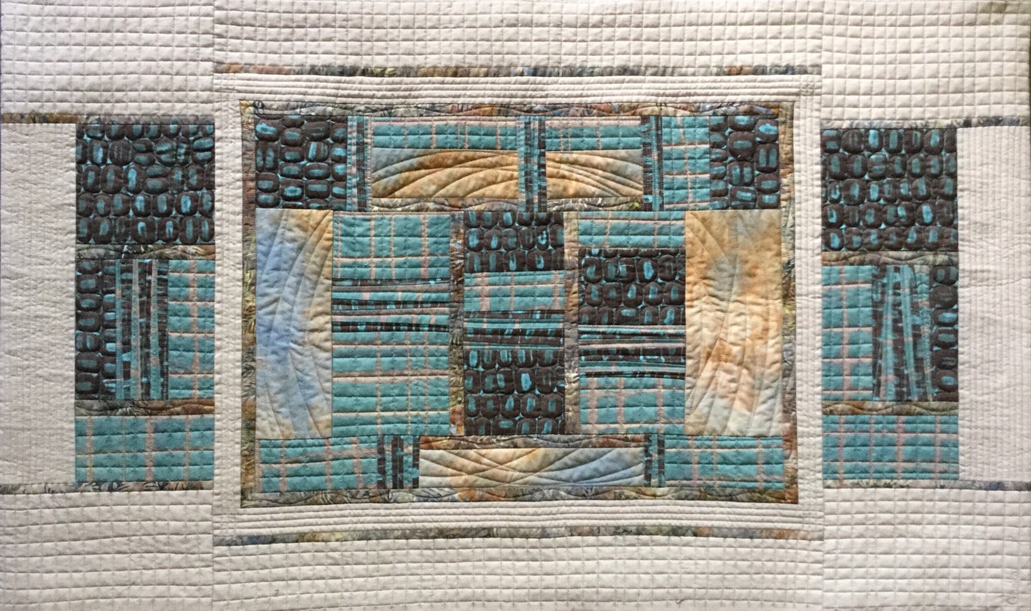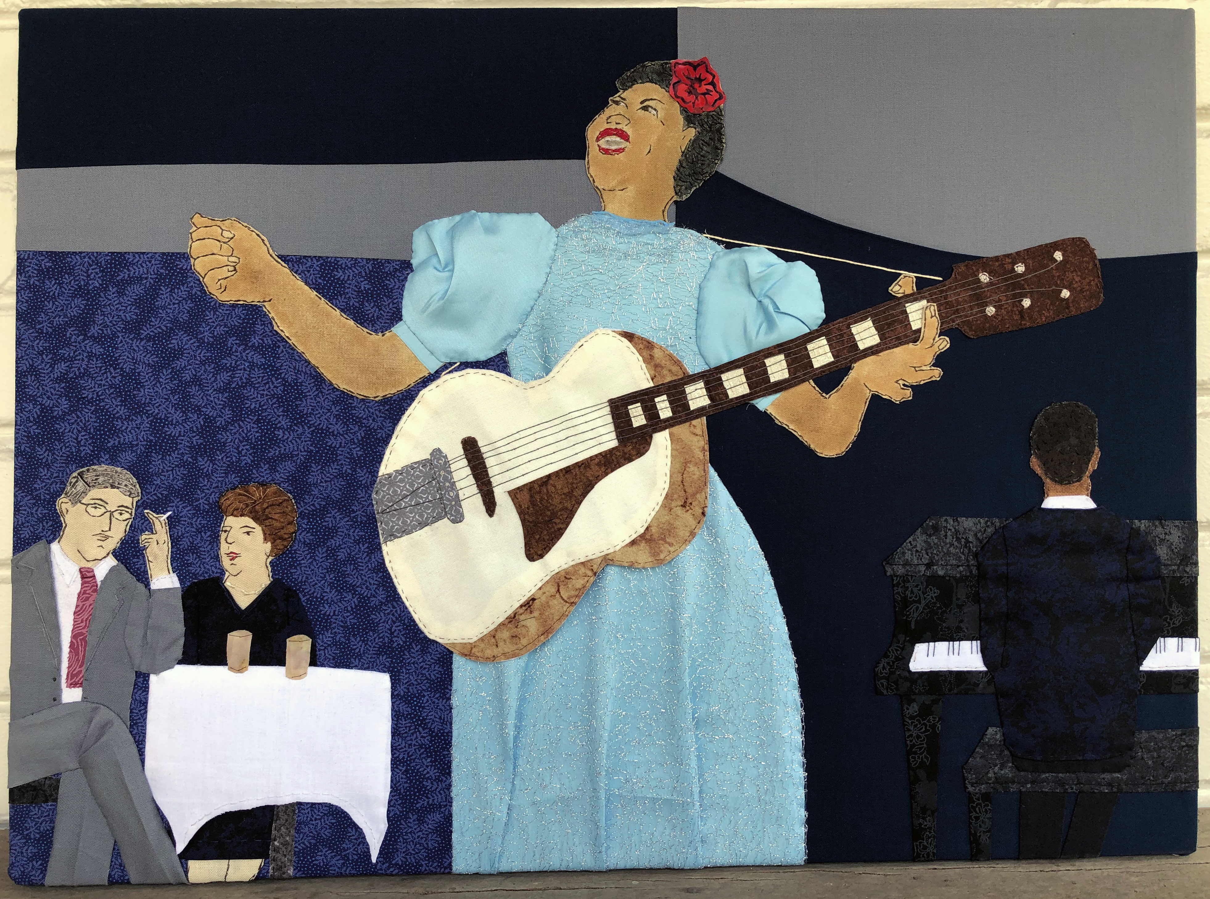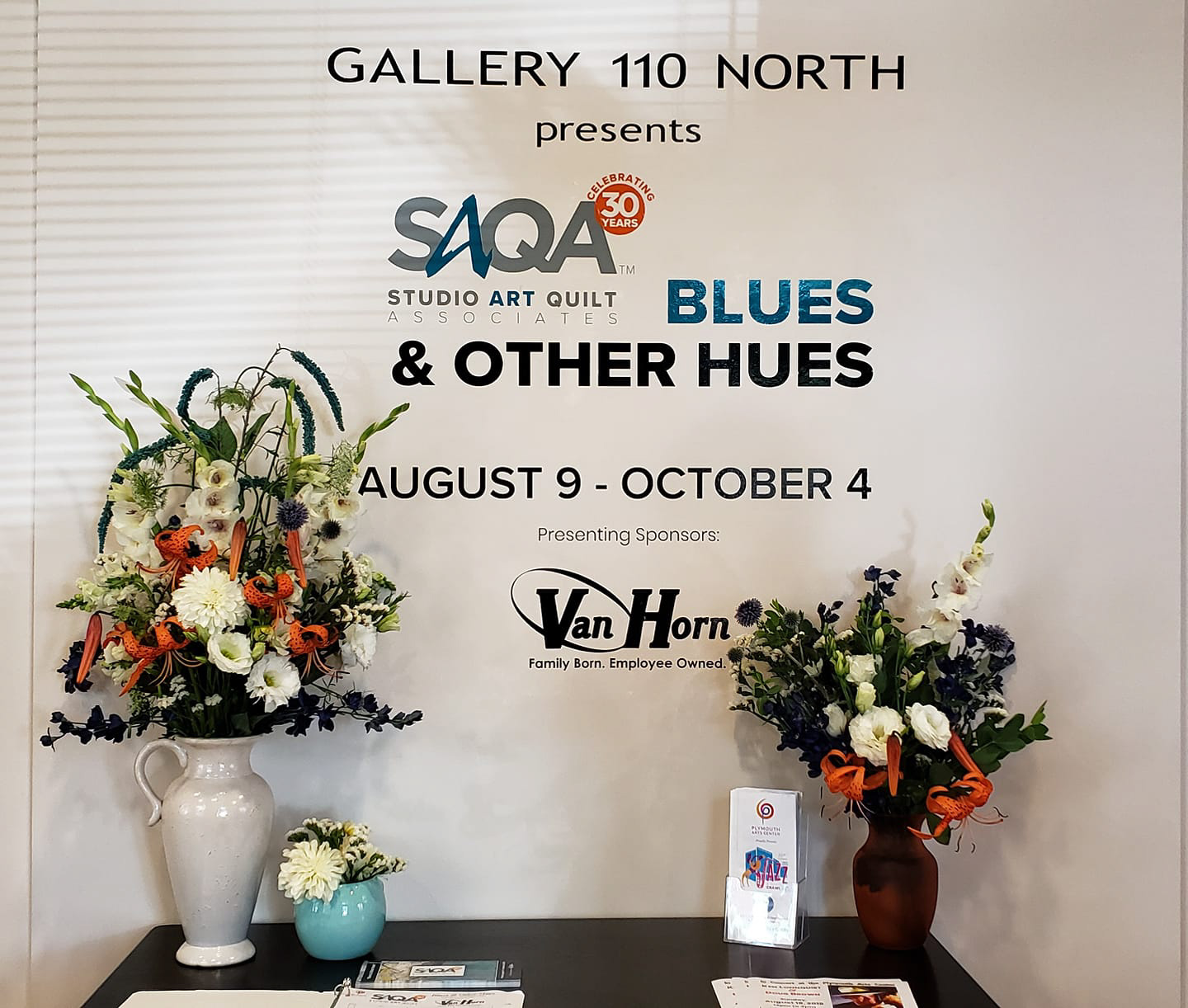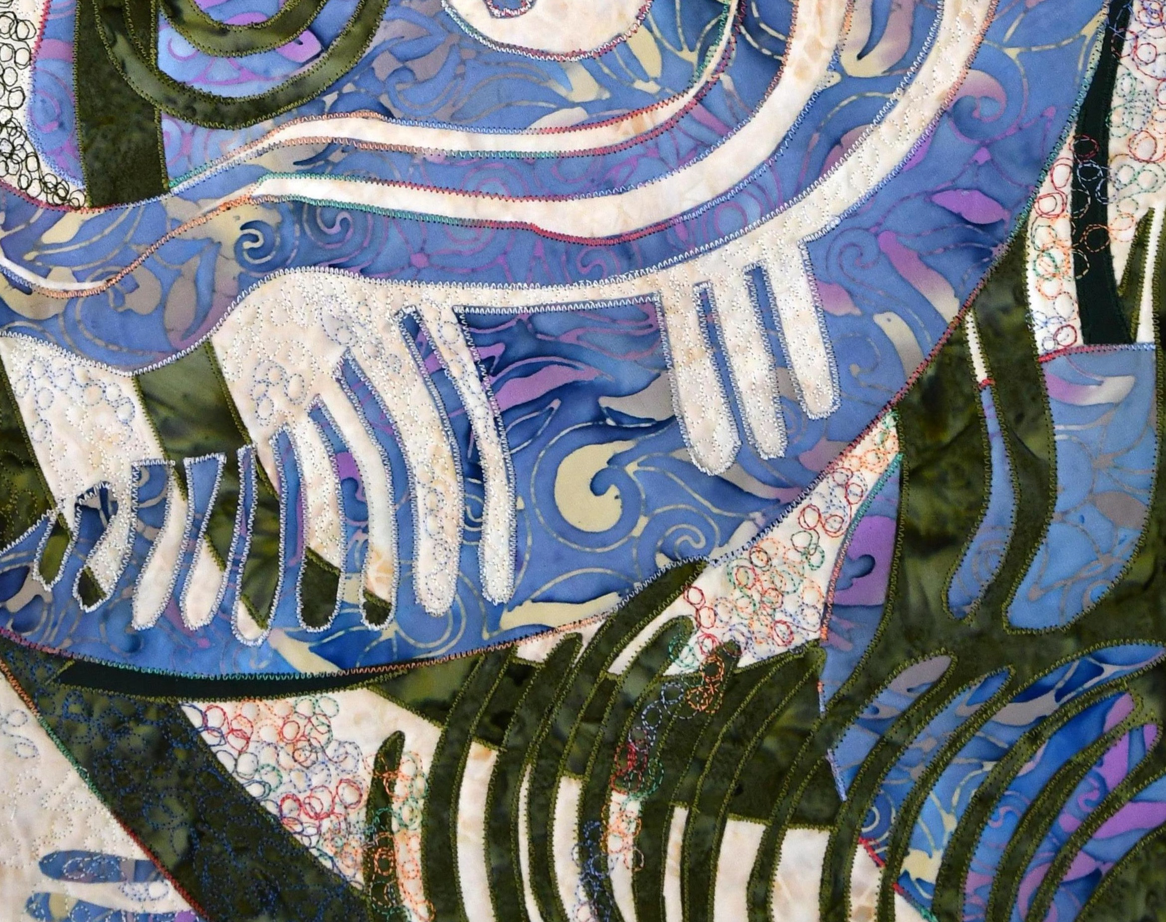 Fiber artists of Studio Art Quilt Associates (SAQA) present their work at the Plymouth Arts Center in an exhibition entitled “Blues & Other Hues.” This brand-new exhibit is inspired by the PAC’s annual Jazz and Blues Crawl Fundraiser for the Arts and features over 65 art quilts created by SAQA artists from Wisconsin, Illinois and invited members. SAQA defines an art quilt as “a creative visual work that is layered and stitched or that references this form of stitched layered structure.” Music and Art, creativity and imagination, innovation and perception, one affects the other until the edges blur. Envisioning rhythm, balance and texture the artist is free from any preconceived notion of cloth. The public is invited to meet the artists at the opening reception held in Gallery 110 North, in conjunction with the Jazz Crawl, on Friday, August 9th, 2019 from 4:30pm to 8pm. The show will be on display through October 4th. “Blues & Other Hues” is generously sponsored by Van Horn Auto.