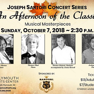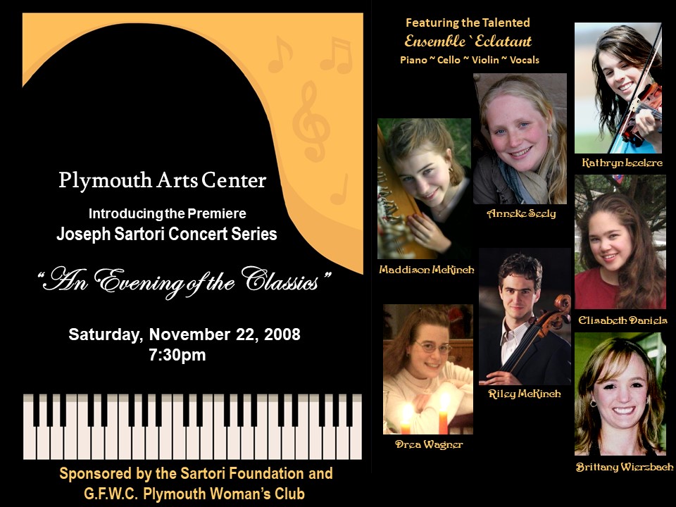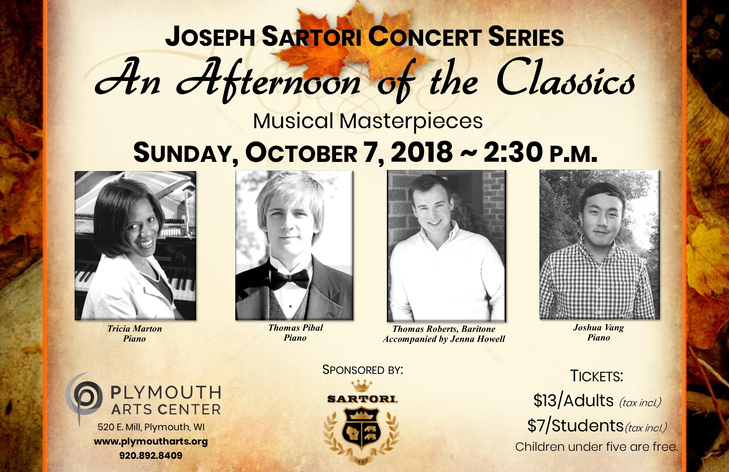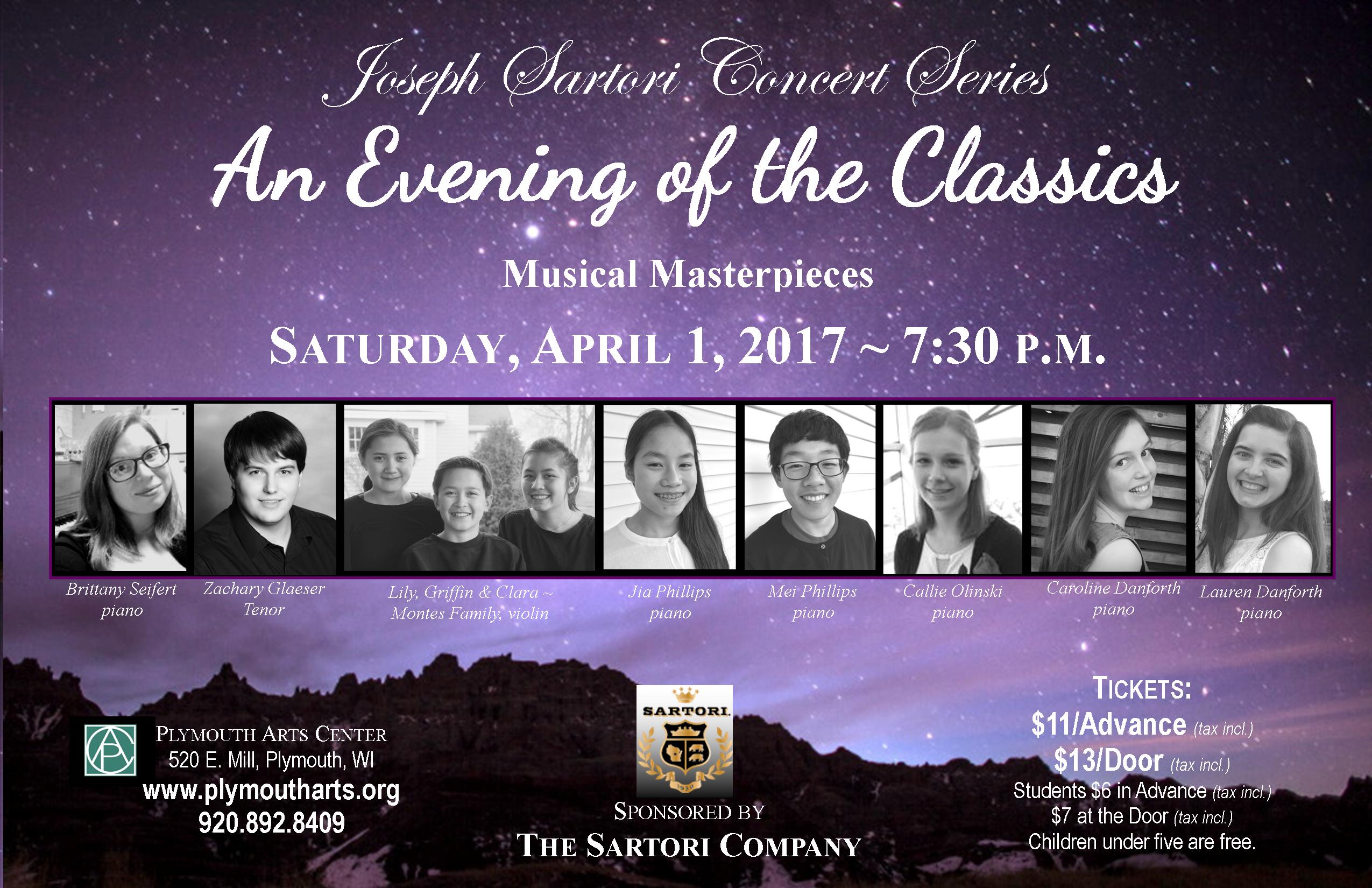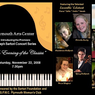 This concert series is a tribute to the late Joseph Sartori in honor of his musical talent and in appreciation of the Sartori Family’s generous contribution to the Plymouth Arts Center. The PAC thanks the Sartori Family for sharing these comments about their father and the concert…….. “Our dad, Joseph Sartori, while known primarily for his work with S & R Cheese/Sartori Foods, for most of his life, was also known as a highly accomplished pianist. Joseph’s aunt, Ada Lombardi, an acclaimed concert pianist with the Philadelphia Philharmonic Orchestra, taught Joseph the piano, and especially “The Classics.” While he did not pursue a musical career, as his aunt thought he should, he did continue to play, practically daily, for the rest of his life. The Steinway grand piano used for “An Evening of the Classics” is the one our dad bought in the early 1960s. He played many of the same pieces performed for this concert for his own enjoyment, as well as that of his family and friends. The Sartori Steinway piano is on loan to the Plymouth Arts Center to allow others to play it, and for all of us to continue to enjoy the music that our father loved so dearly. Many pianists who have played “Papa Joe’s” Steinway speak highly of its sound and feel privileged to have the opportunity to play such a wonderful instrument. Our dad will be listening to the concert, and the Sartori family is proud to be a part of “An Evening of The Classics.”