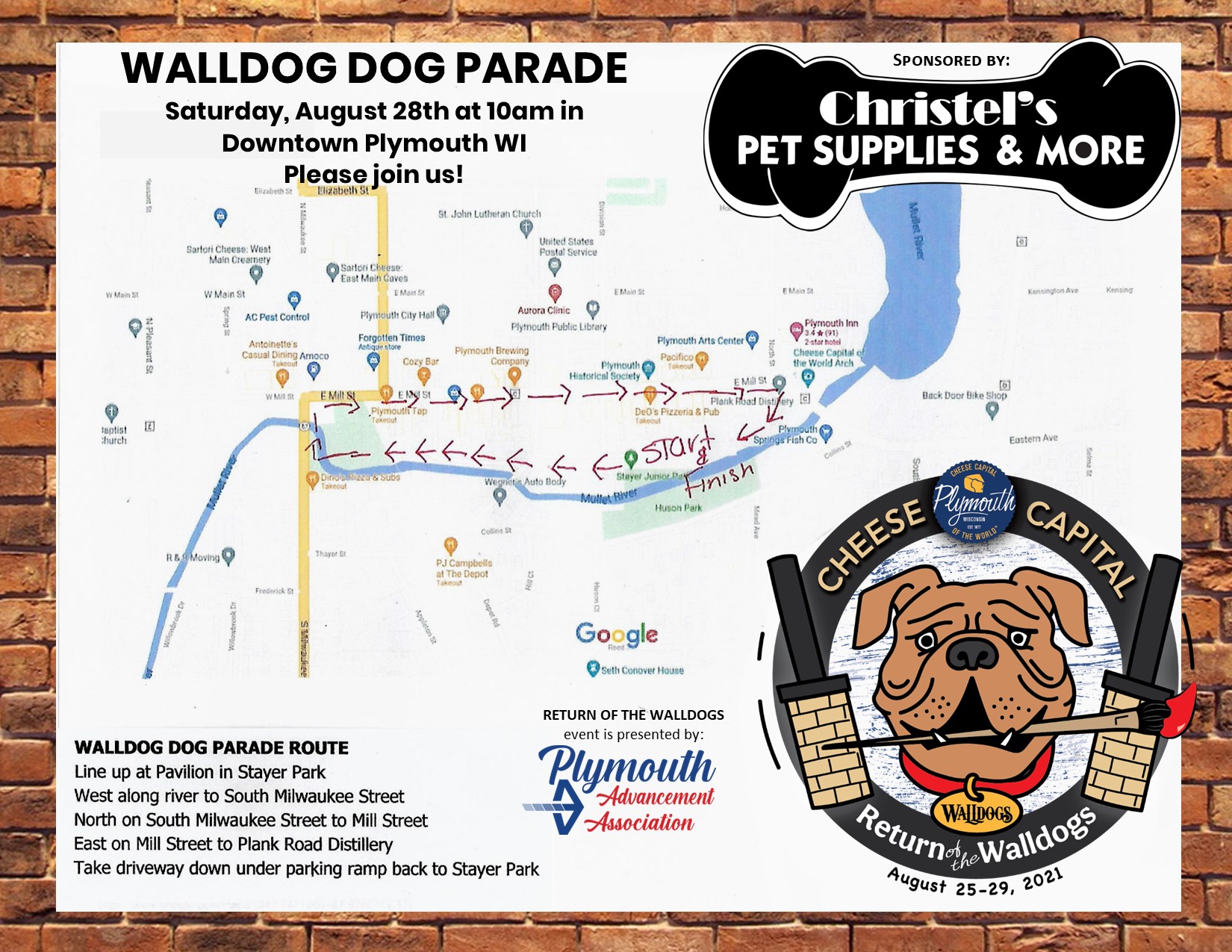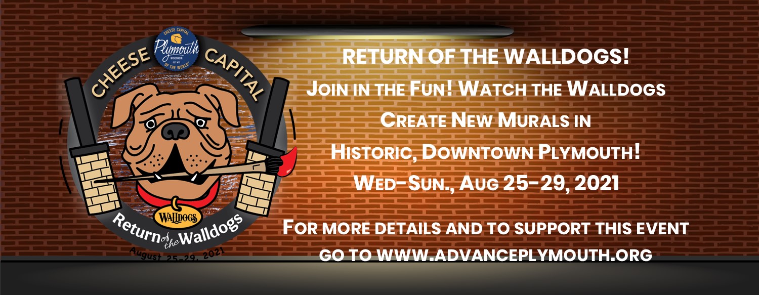 In 2011, Plymouth was selected by the prestigious Walldogs who “Rocked the Cheese Capital” leaving behind 21 beautiful, handcrafted and professionally painted murals depicting our rich history. This was significant considering the Walldogs typically only convene at one location each year. Fast forward ten years to the “Return of the Walldogs” which will take place August 25 – 29th. Four new murals will be painted along with two existing murals being repainted onto panels. In addition to capturing local business and community history, the murals draw residents and visitors to enjoy a self-guided mural tour throughout the historic downtown. You can download or pick up a map the Plymouth Chamber created and find QR codes on each mural which provides background information.