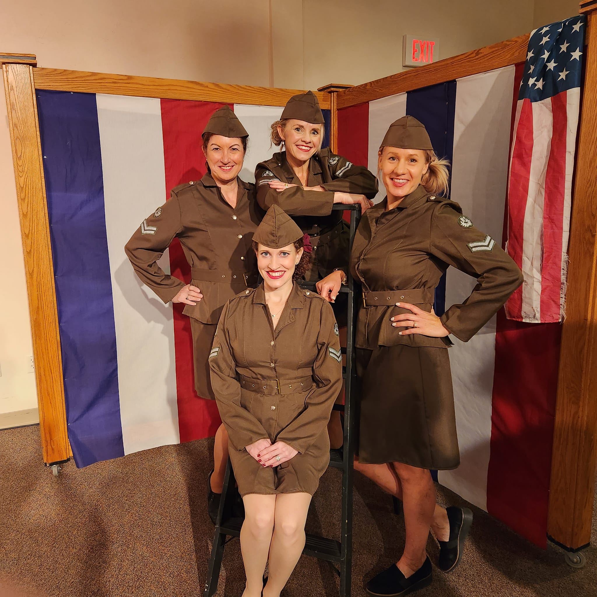 Included in the program will be songs with historical narratives such as Ballad of the Green Berets, novelty songs, Snoopy and the Red Baron, U.S.O. and movie show tunes, Gee, I Wish I Were Back in the Army, patriotic tunes, Over There, songs of remembrance, Shores of Normandy, and many more! A traditional “Armed Forces Salute,” (when veterans of military branches stand for recognition,) will be presented during the show as well as a few sing-a-long numbers.
