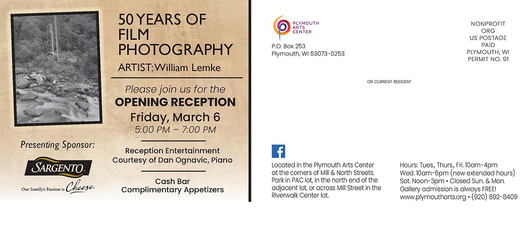 Gallery 110 North is located in the Plymouth Arts Center, 520 E. Mill Street in historic downtown Plymouth. Regular PAC hours are Tuesday-Friday, 10am to 4pm. Admission to Gallery 110 North is always free thanks in part to our generous sponsors. Tour and school groups are welcome! Visit the Plymouth Arts Center Gift Shop for fine art and gifts created by our member artists. For more information contact the Plymouth Arts Center, 920-892-8409 or visit us at www.plymoutharts.org; follow us on Facebook, Twitter, and Instagram.